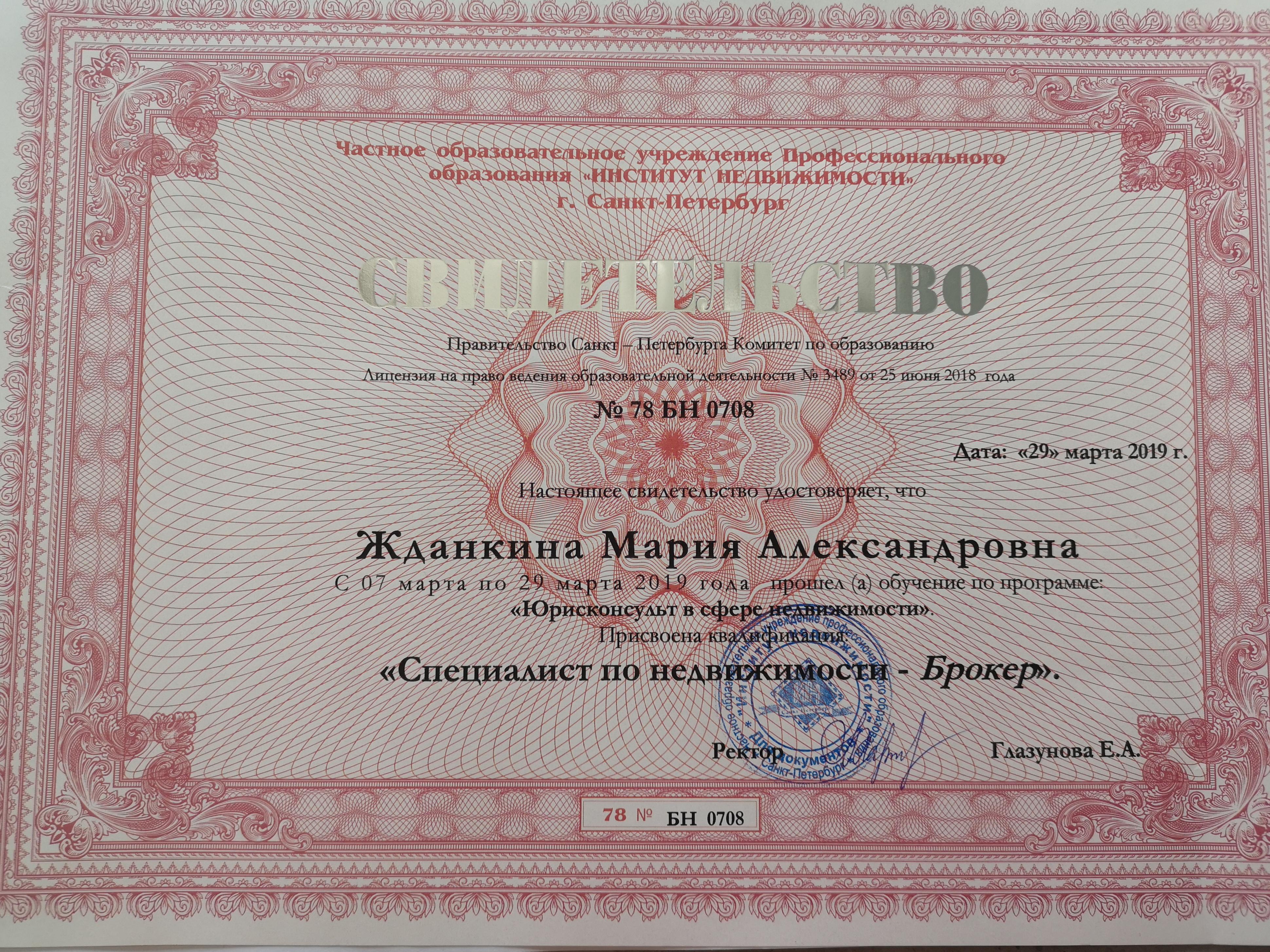 Знакомство с Марией состоялось в процессе покупки квартиры. Очень грамотный специалист, знающий свое дело от и до. Всегда на связи, может проконсультировать по любому возникшему вопросу. Слышит клиента, понимает , что нужно подобрать. Очень внимательна в работе с документами, что очень важно при заключении сделки. Знает действующее законодательство в сфере недвижимости. Рекомендую Марию как грамотного и ответственного специалиста.
