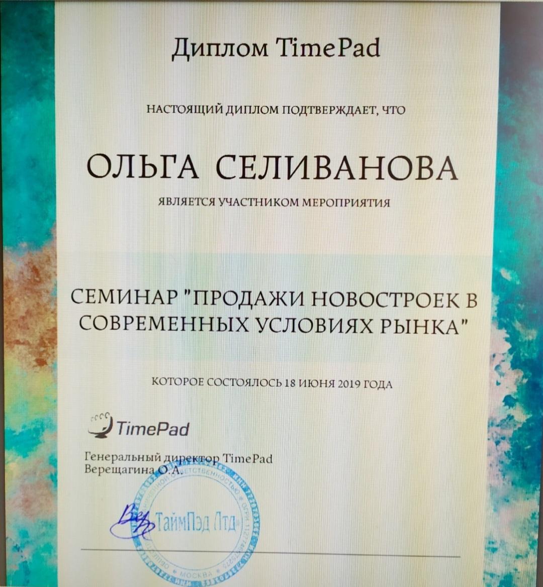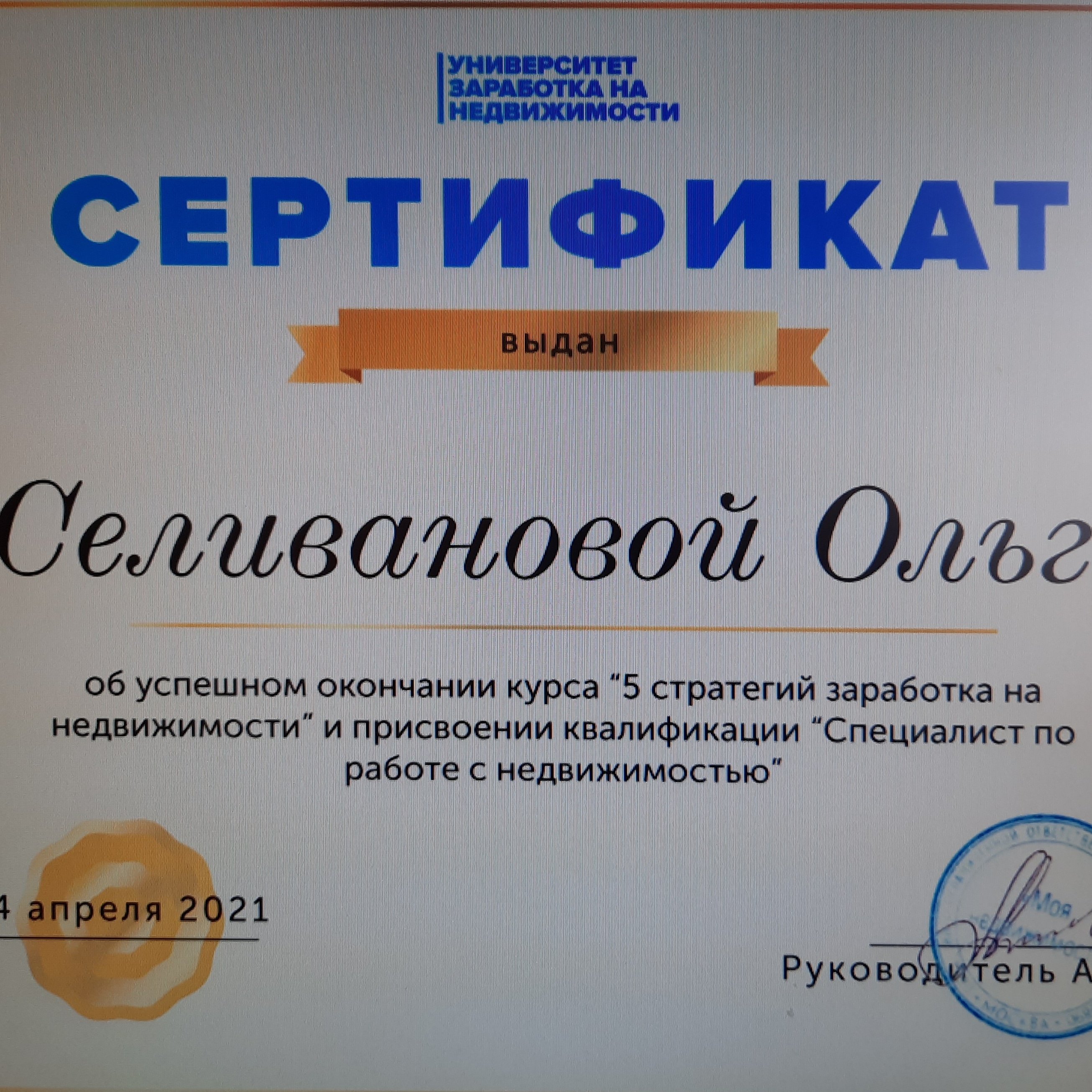 Хочу выразить благодарность Селивановой Ольге за помощь в покупке квартиры. Мы живём в другом городе, выслушав все пожелания, Ольга подобрала объекты для просмотра, грамотно выстроила график просмотра. Сами мы бы не посмотрели за один день такое количество квартир. Ольга всегда была готова ответить на все интересующие вопросы, помогала проанализировать привлекательность покупки, выделив все плюсы и минусы. Посоветовала как безопасно провести сделку, вела все переговоры, контролировала и разъясняла мне все операции по сделке. Я очень рада, что обратилась к Ольге. Советую данного специалиста.