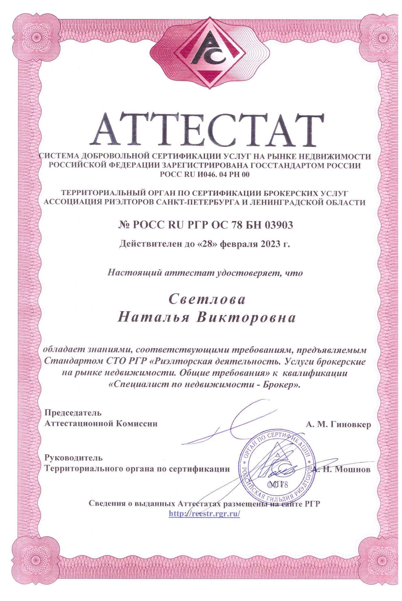 С Натальей Светловой продаю уже не первую квартиру. Очень спокойный грамотный уравновешенный человек. Знает своё дело. Рекомендую. Сделки прошли отлично
