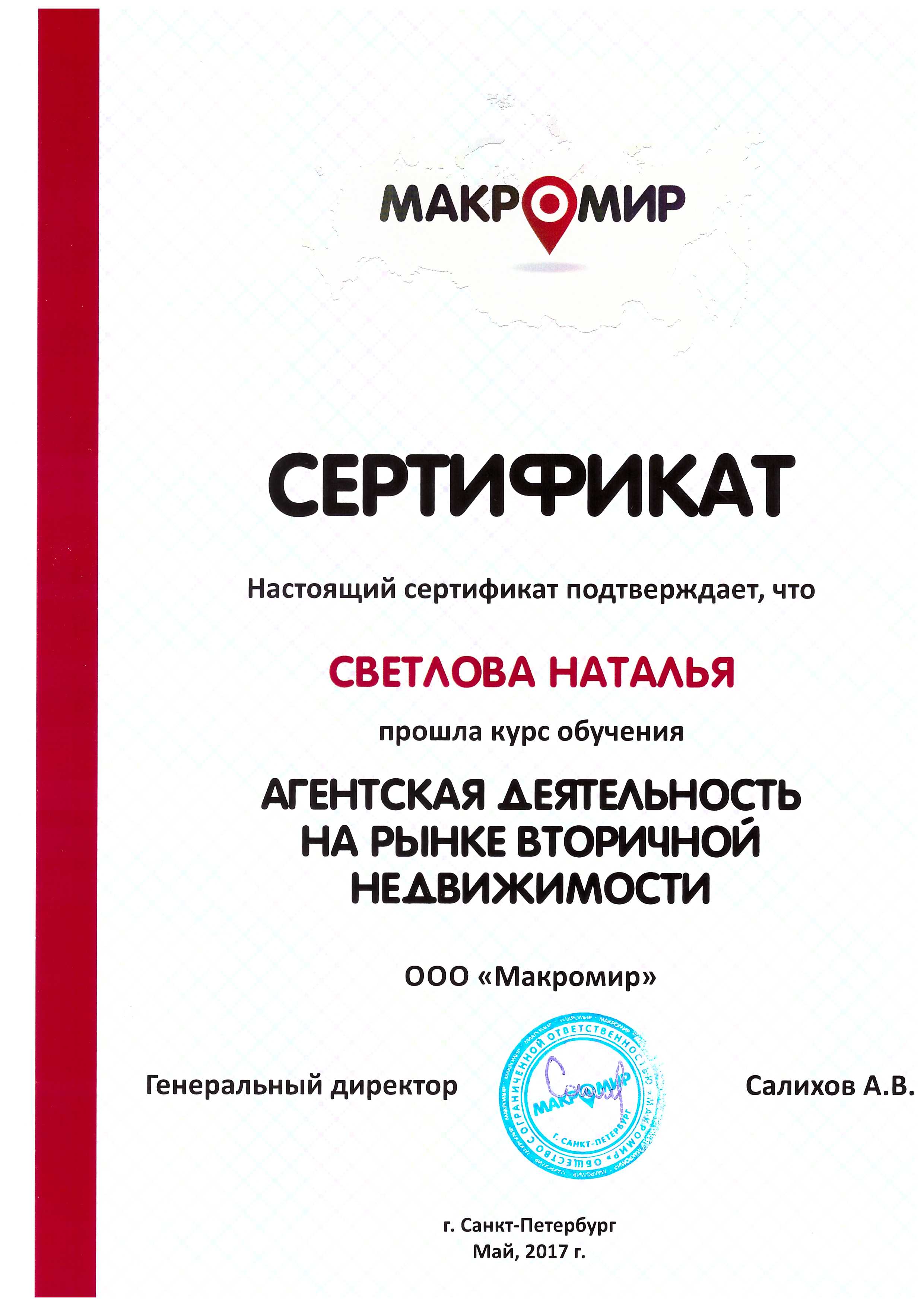 Имею высшее экономическое образование, явлюсь сертифицированным брокером на рынке недвижимости. Специализируюсь на рынке вторичной недвижимости. Индивидуальный подход к каждому клиенту, 100% результат, качество и безопасность гарантирую.