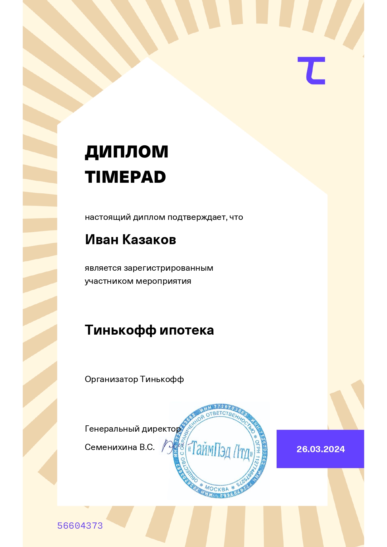 Хочется выразить огромную благодарность Казакову Ивану! Никогда бы не подумала, что покупка квартиры может оказаться таким быстрым процессом