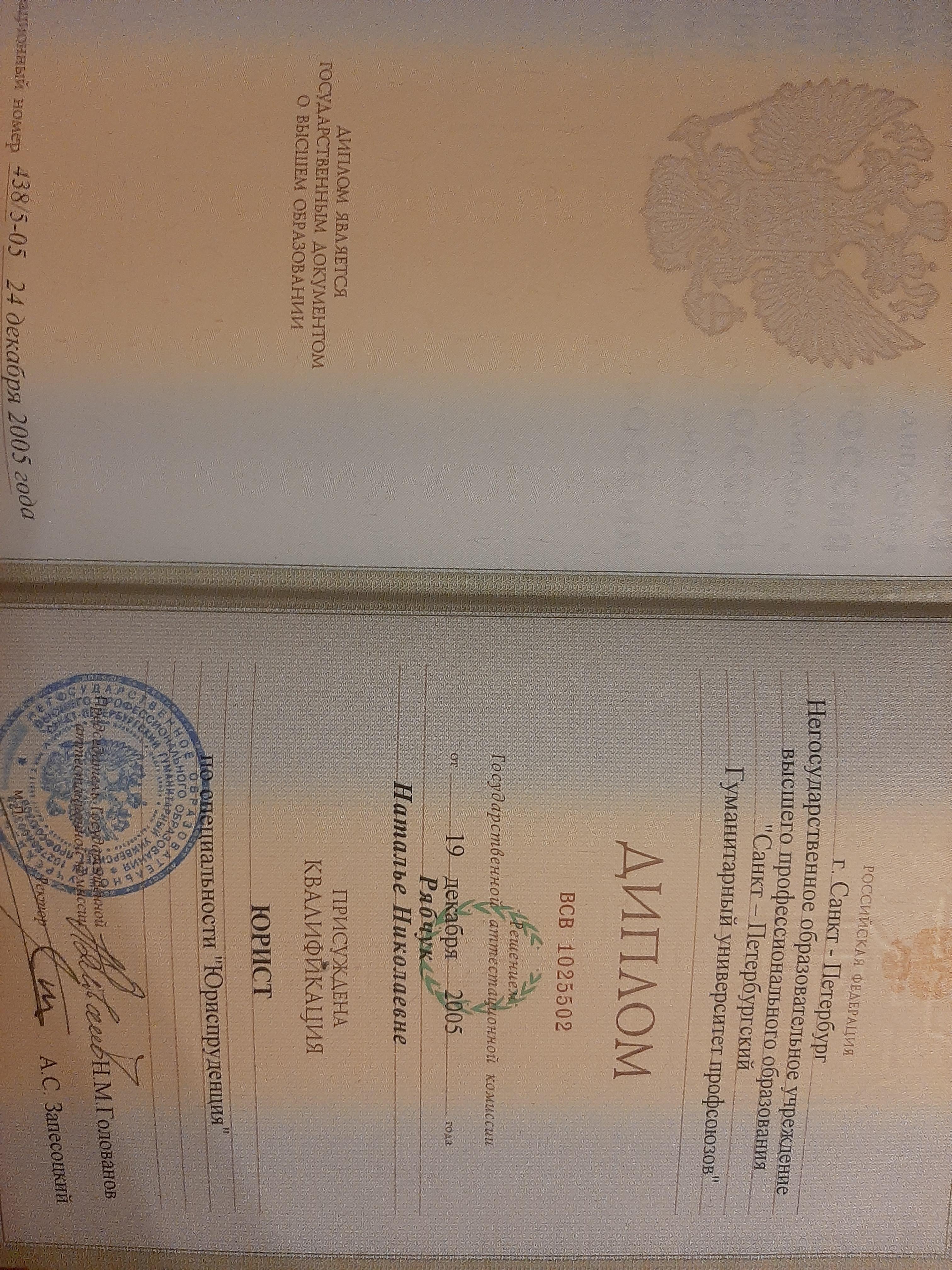 Наталия- профессионал своего дела, имеющая юридическое образование и знание всех законов, касающихся продажи недвижимости и не только.