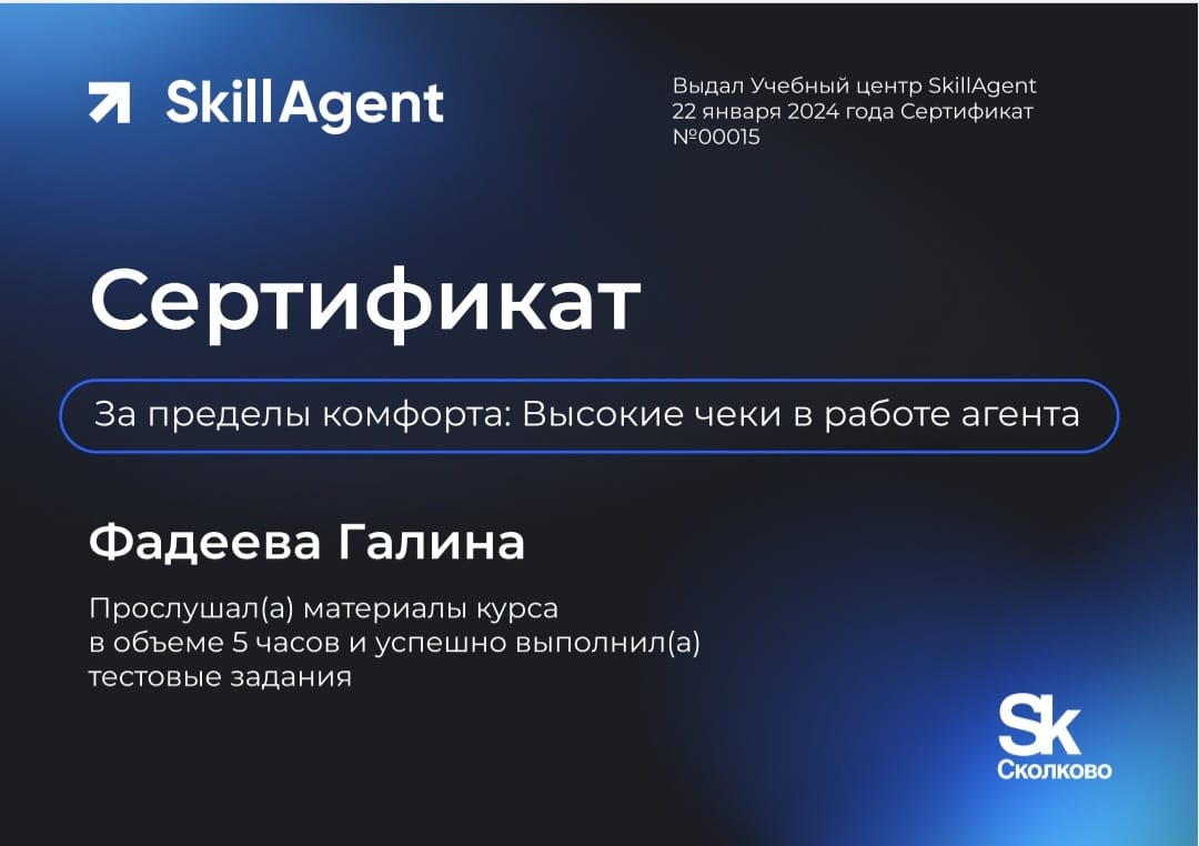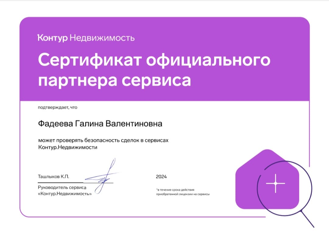 Хотели бы выразить благодарность Риелтор у, Фадеевой Галине, покупали квартиру в начале февраля 2024 г. Галина представляла другую сторону (продавца). Общались непосредственно с ней, с продавцом встретились только на регистрации. Оценили её профессионализм, компетенцию, все было на высшем уровне, очень приятно было с ней работать. Всегда была на связи, отвечала на любые вопросы. Всё пожелания, дополнения в договор обсуждались и внлсились. Сама сделка прошла очень оперативно благодаря тому, что документы Галиной были подготовлены заранее и согласованы со службой регистрации Домклик. Соответственно, регистрация права собственности прошла в день сделки (отдельное спасибо!), через два дня продавец получил деньги, а мы - ключи от квартиры. Самые хорошие впечатления и наилучшие рекомендации.