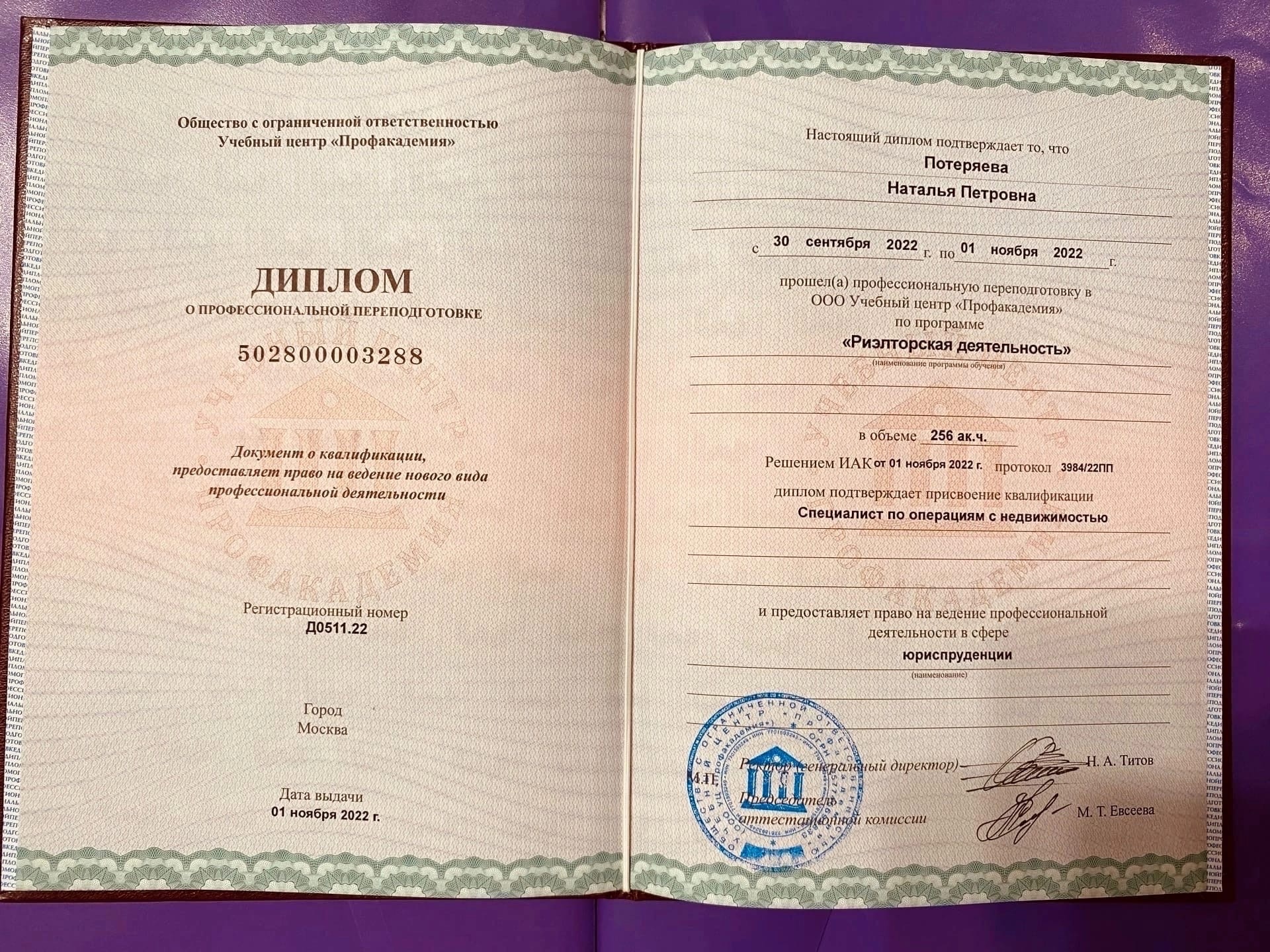 Очень Большое спасибо Потеряевой Наталье Петровне за очень ответственное отношение к своему делу. Все сделала очень быстро, грамотно, четко и главное понятно! Отвечает на любой возникший вопрос понятно и доступно.Также рекомендую Наталью как специалиста по недвижимости.