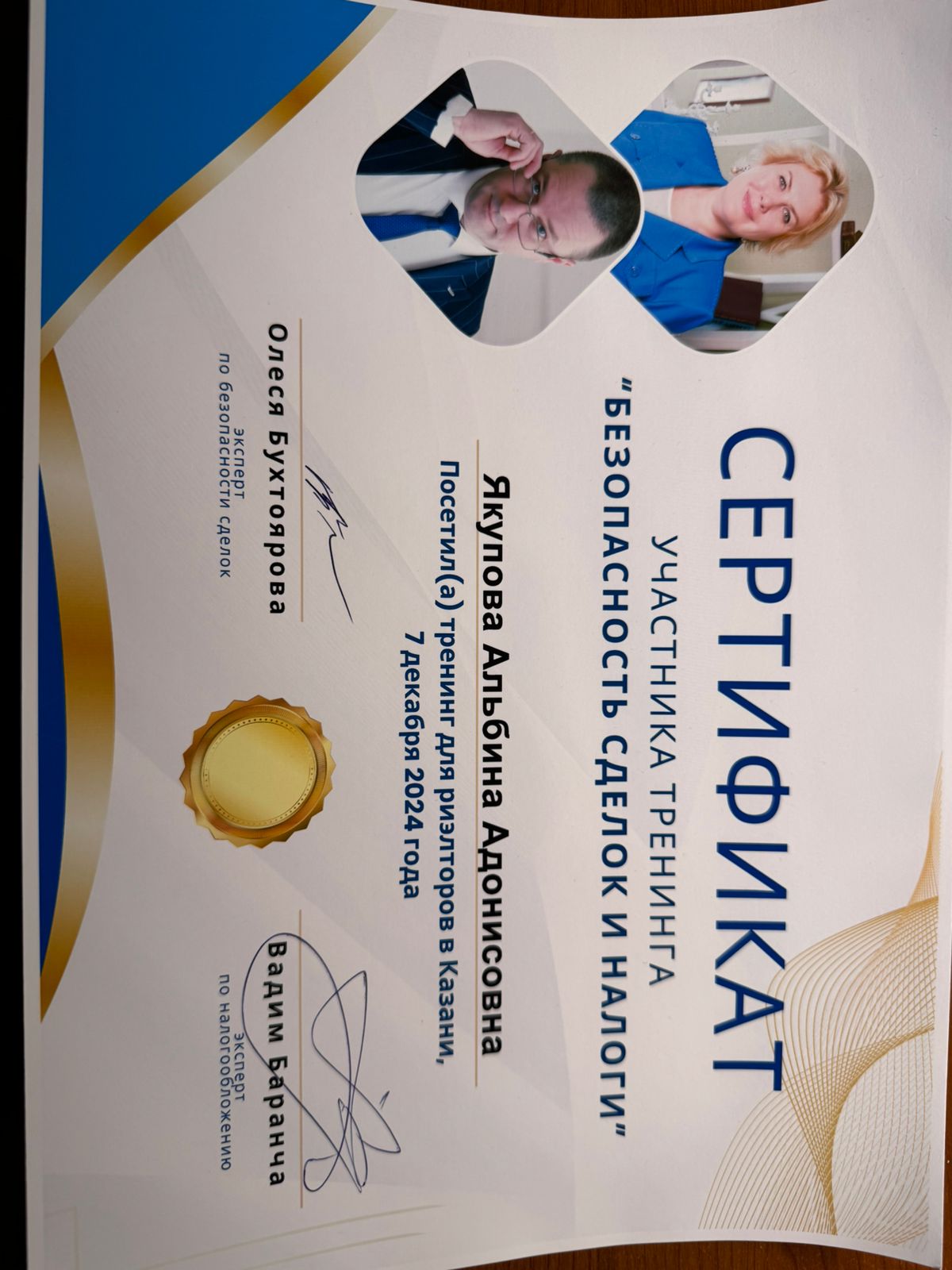 Хочу выразить искреннюю благодарность Альбине Якуповой за профессионализм и внимательное отношение на всех этапах сделки! Благодаря её помощи процесс покупки дома прошёл максимально гладко и без лишних переживаний. Альбина Якупова всегда была на связи, оперативно отвечала на все вопросы и предлагала лучшие варианты. Особенно ценю честность и прозрачность в работе, а также умение находить компромиссы и решать возникающие сложности. Рекомендую Альбину Якупову всем, кто ищет надежного и компетентного специалиста в сфере недвижимости!️