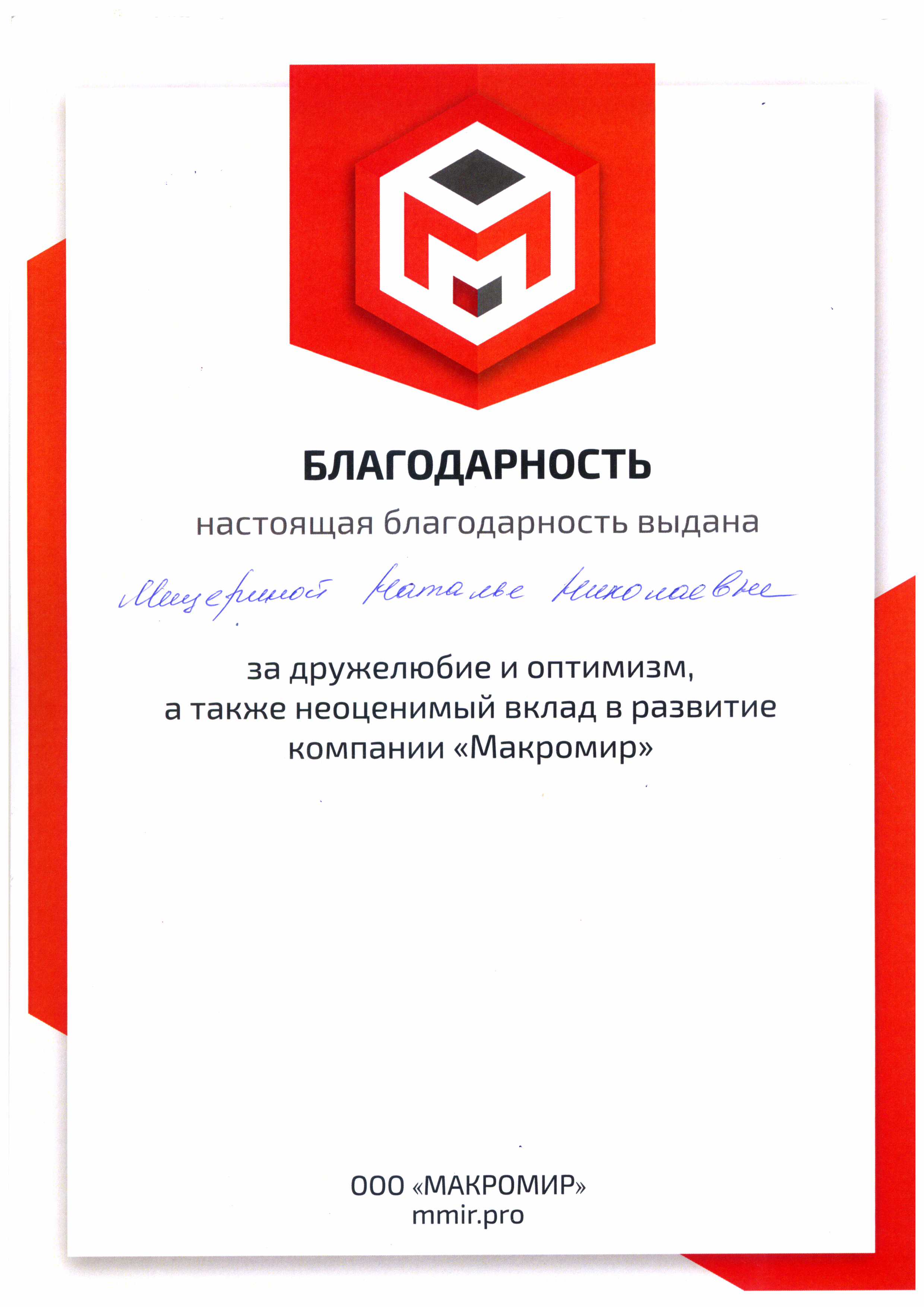 Хочу выразить благодарность Мещериной Натальи Николаевне, за её отзывчивость, ответственность и профессионализм. Спасибо большое, вы лучшая
