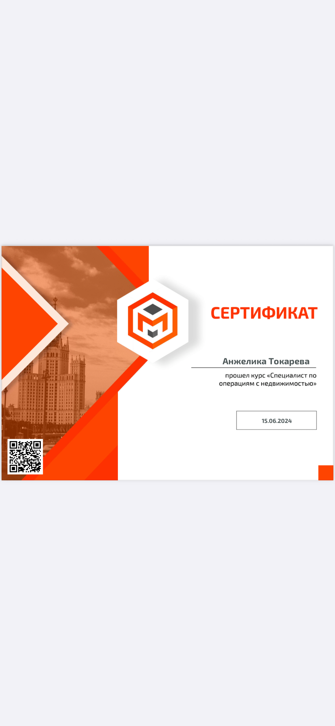 Хотим выразить искреннюю благодарность Токаревой Анжелике за проделанную работу!!!Честная работа, позитивный настрой,четкий план действий, высокий уровень профессионализма, умение владеть собой, умение анализировать и пользоваться информацией, настойчивость, индивидуальный подход и теплые деловые отношения к клиентам, максимальный учет пожеланий, умение просто и доходчиво объяснить сложные тонкости нашего законодательства. Чрезвычайное чувство такта! Анжелика, спасибо за вашу работу, очень признательны за участие и помощь в решении других жизненных моментов. Две успешно проведенные сделки, последняя 03.03.2024, все грамотно, четко и оперативно, а главное честно! Рекомендуем всем! Качество работы — по высшему разряду! Побольше бы таких профессионалов, как Анжелика!
