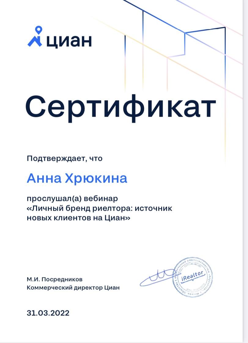 Отличный специалист в данной сфере, всегда переживает и помогает с любыми возникающими вопросами, постоянно остается на одной волне с клиентом, умеет найти общий язык и разобраться в трудных ситуациях. Анна помогла мне найти новую, уютную квартиру, за что я ей очень благодарен, а комплимент на новоселье был очень вкусным, огромное спасибо!