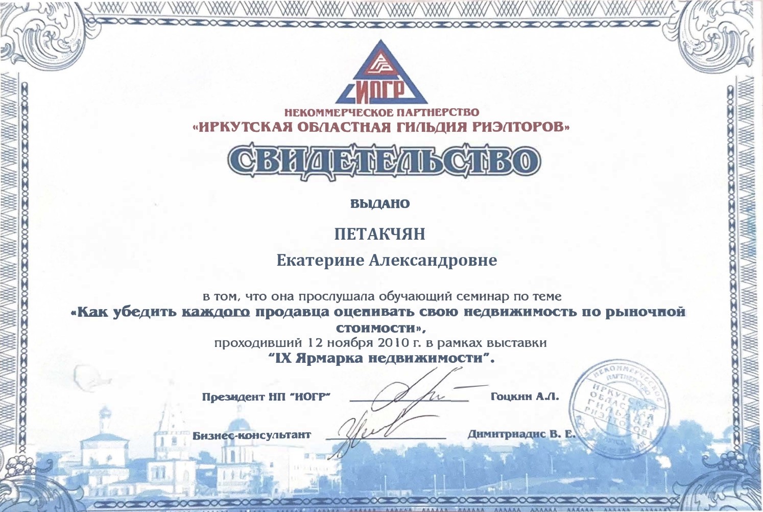 Хочу оставить отзыв о работе риэлтора Екатерины Петакчян. С Екатериной наша семья провела уже несколько сделок, начиная с 2011 года. Екатерина грамотный специалист и тактичный человек. Вся подготовка, работа с документами, проведение сделок по купле и продаже недвижимости - всё это проходит блестяще и в самые короткие сроки под руководством Екатерины. Так же с Екатериной по моей рекомендации провели сделки мои родственники, чем остались очень довольны. С удовольствием рекомендую этого риэлтора всем, кто заинтересован в удачном исходе сделок по купле и продаже недвижимости!