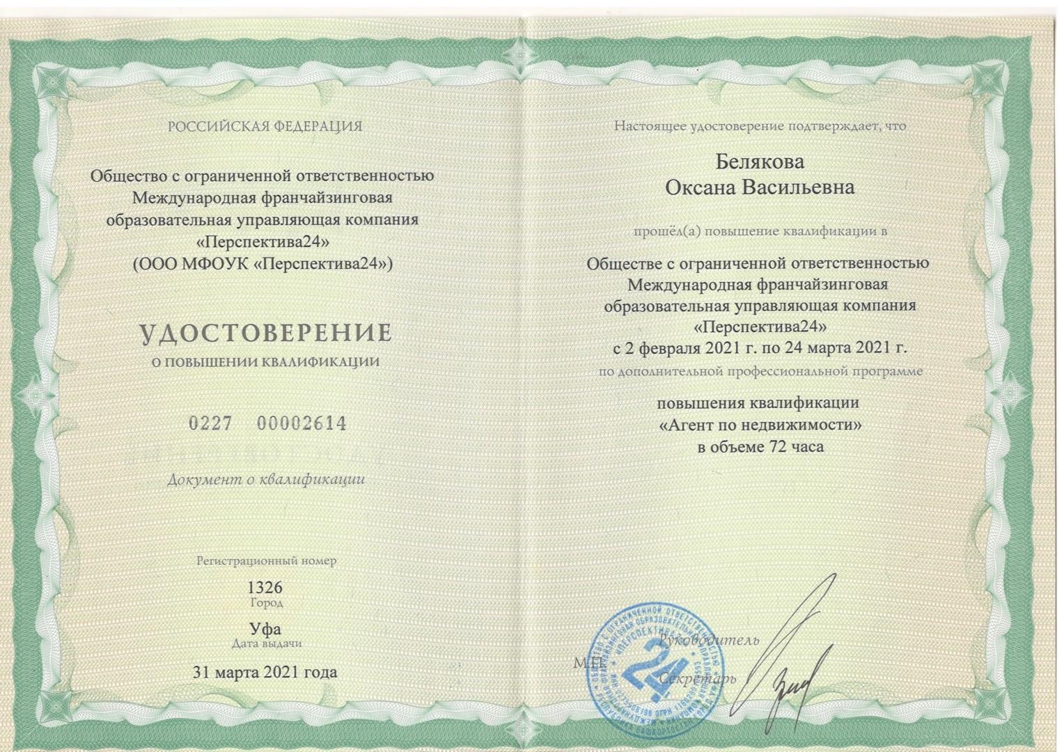 Хочу выразить благодарность риэлтору Беляковой Оксане. Грамотный и отзывчивый специалист, готовый помочь, объяснить и уладить все текущие задачи в процессе всей сделки. Она всегда была на связи, оперативно отвечал на все вопросы. Всё четко и доступно. Юридическая поддержка так же на высоте.