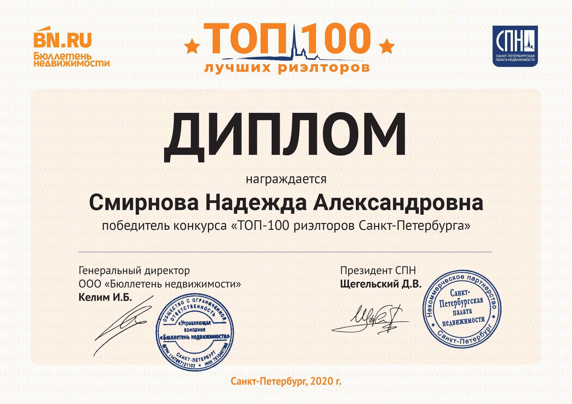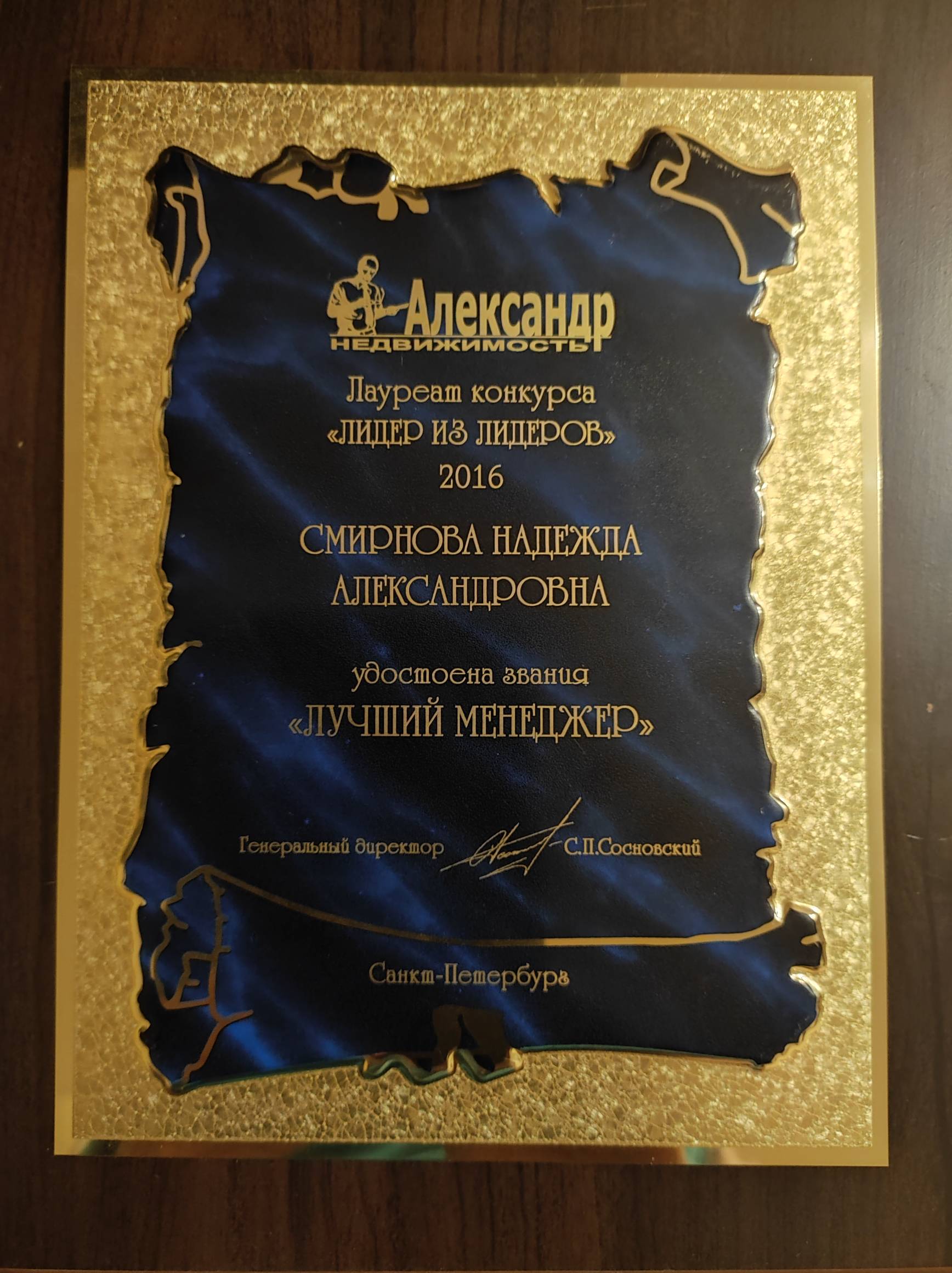 Я рекомендую Надежду Смирнову всем, кто дорожит своей безопасностью, кому важна юридическая грамотность риэлтора, его добросовестность и умение договариваться в интересах своего клиента. Надёжнее специалиста в жилищной сфере я не встречала, хотя лично имею дело с арендой жилья, много лет. От всей души желаю Надежде успехов, хороших клиентов, и благодарю за труд!