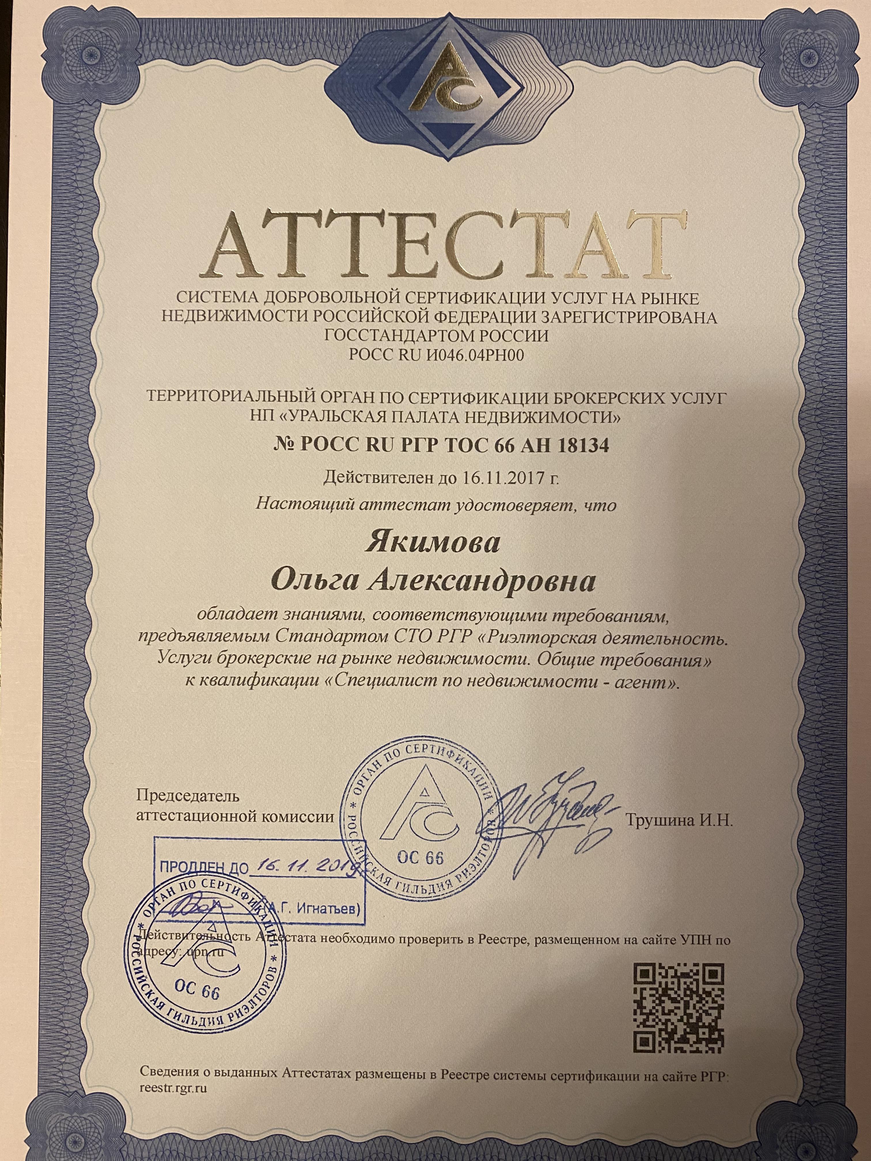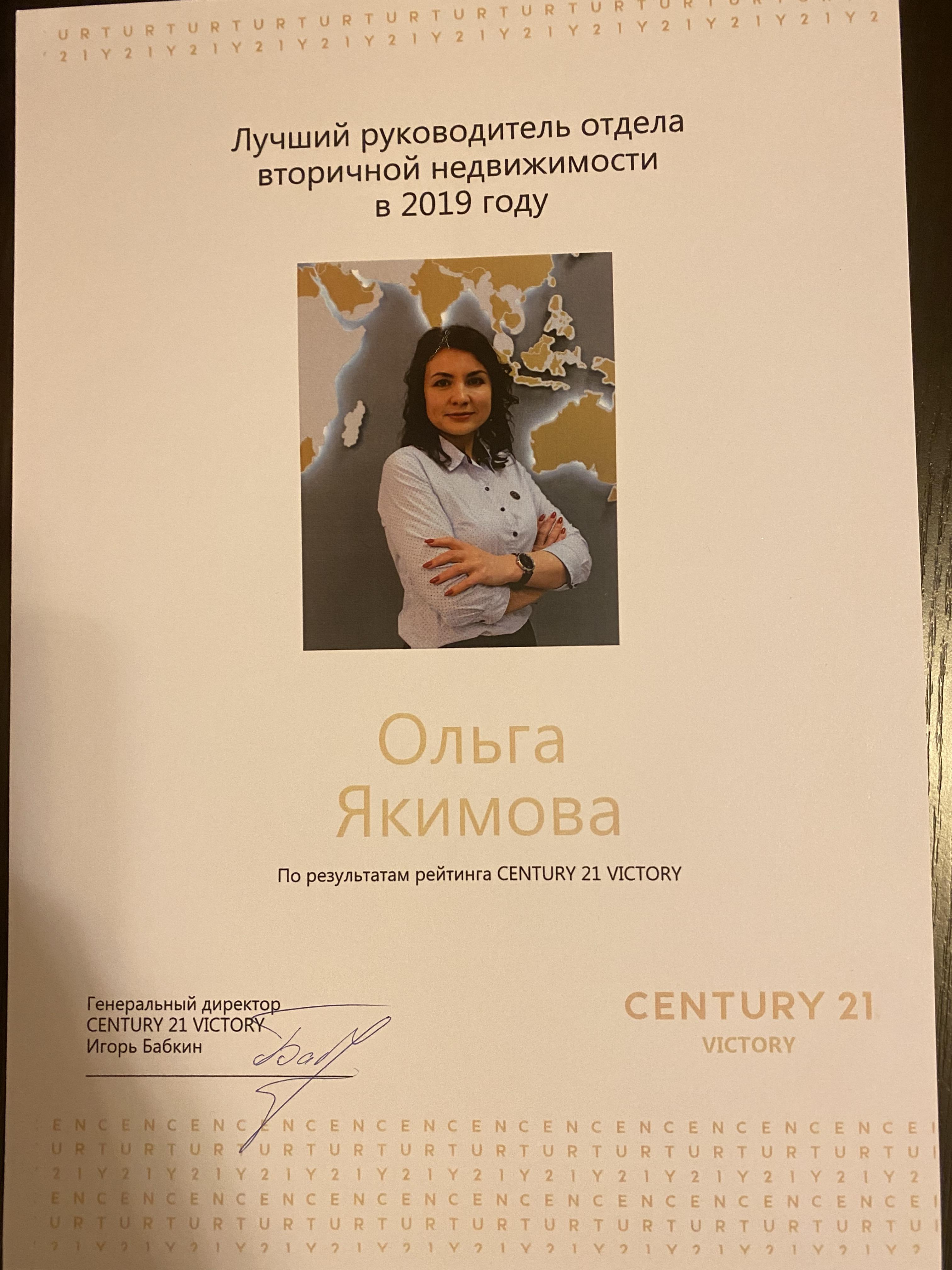 Хочу выразить огромную благодарность Якимовой Ольге Александровне! Благодаря ее профессионализму и чуткому отношению к работе чувствуется поддержка на всех этапах работы по продаже и покупке новой квартиры. Все прозрачно, всегда на связи, все под контролем и не возникает никаких вопросов. Была произведена объективная оценка нашей квартиры и продана в короткий срок по максимально рыночной цене, чем мы очень остались довольны! Также Ольга проделала огромную работу для покупателей нашей квартиры, так как риелтор, с которым они работали, мягко скажем, недобросовестно выполнял свои обязанности.