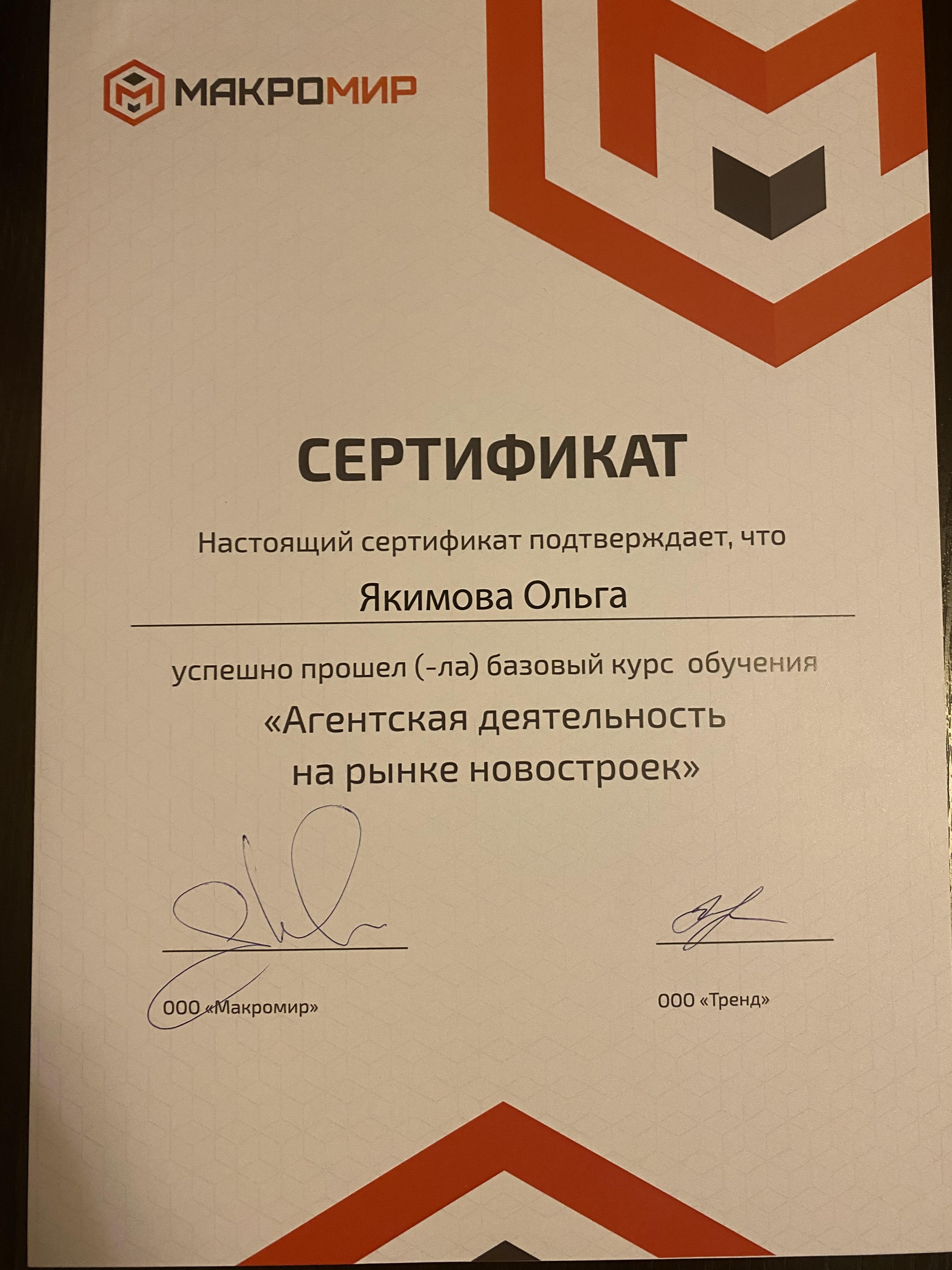 Отличная работа Ольги и её команды, профессионально, работали дистанционо с агентами. Сделку сопровождали от нлчала, до получения всех документов. Рекомендую компанию и это честно, как правило не все доверяют агентам, но этим можно. Удачи вам Ольга и вашим сотрудникам.