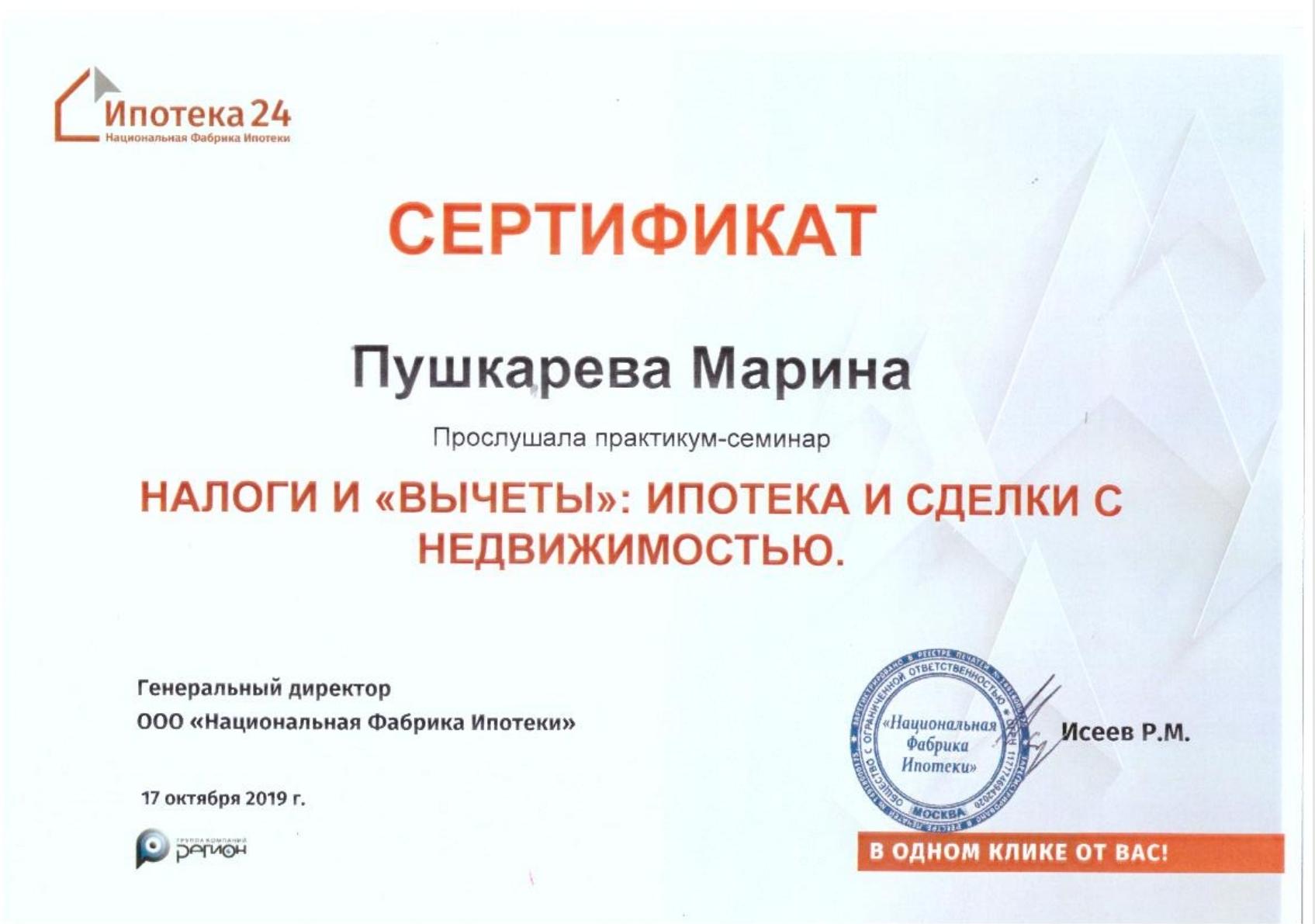 Хотим поблагодарить специалиста по недвижимости Пушкареву Марину Владиславовну за полное сопровождение сделки по покупке новой квартиры в новостройке! При заключении сделки было много волнений и переживаний. Мы находились за пределами России и сделку пришлось оформлять дистанционно, но благодаря опыту и профессионализму Марины Владиславовны все вопросы и проблемы решались быстро в установленные сроки. Марина всегда держала нас в курсе событий и практически в любое время, включая выходные и праздничные дни, консультировала и давала советы по любым вопросам. Большое спасибо ей за советы и предложения по выбору квартиры. Рекомендуем всем Марину Владиславовну как высококвалифицированного эксперта по недвижимости!