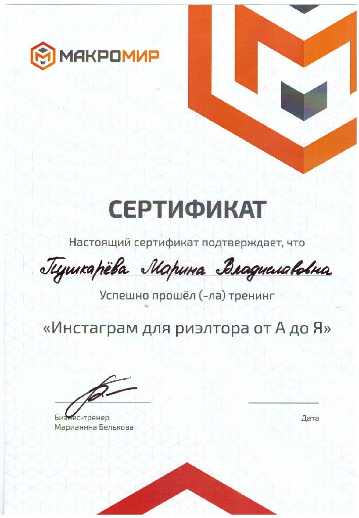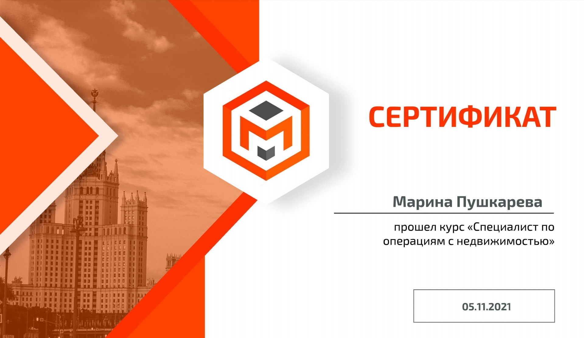 Выражаем огромную благодарность Марине Владиславовне Пушкарёвой за помощь в покупке квартиры. За её Внимательный и индивидуальный подход,теплое деловое отношение к клиентам. За готовность в любое время ответить на вопросы и дать консультацию на любом этапе сделки: от выбора квартиры и до выдачи ключей.
