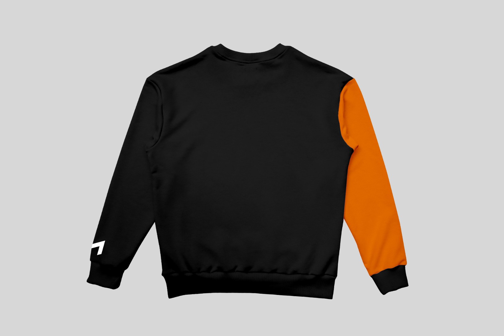 Стильно не значит дорого! Нестандартное решение в виде оранжевого рукава придётся по вкусу модникам и модницам. Черный свитшот с оранжевым рукавом и надписью "I AM REAL TOP." на груди. Метод нанесения - сублимация. Надпись "100% эксперт" и логотип на рукаве нанесены методом машинной вышивки.